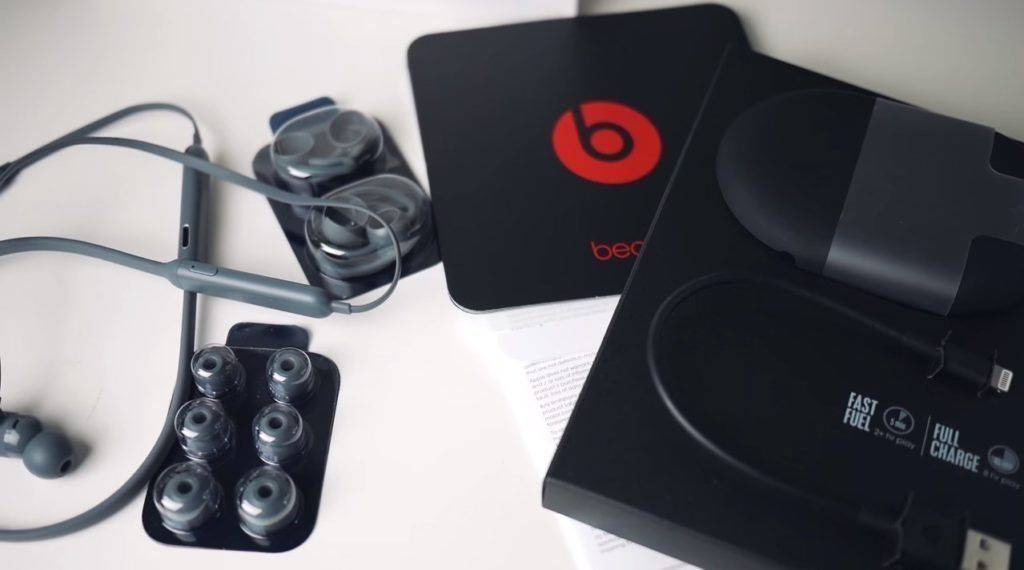 Уши гарнитуры крепятся на плоский кабель, защищенный от закручивания. Комплектация амбушюрами нескольких размеров позволяет подобрать удобное сочетание. Эргономичные наушники хорошо держатся в ушах при движении. Также производитель разработал гарнитуру с дополнительным креплением для занятий спортом. Первые модели Powerbeats Wireless по качеству звучания сильно проигрывают третьему поколению, поэтому здесь их не будет.