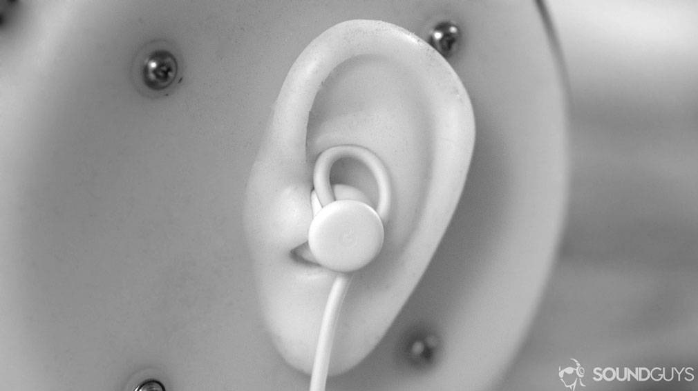 The Google Pixel USB-C earbuds also share a similar design aesthetic to the Pixel Buds, except they’re much more miniature. There’s still a loop you can adjust to help keep the buds in your ear, but there are no touch controls. They also look a bit plain, with an all-white design that makes them easy to mistake as Apple’s EarPods from afar. We would have liked to have seen some visual flair here, like the colored power buttons on the Pixel phones.