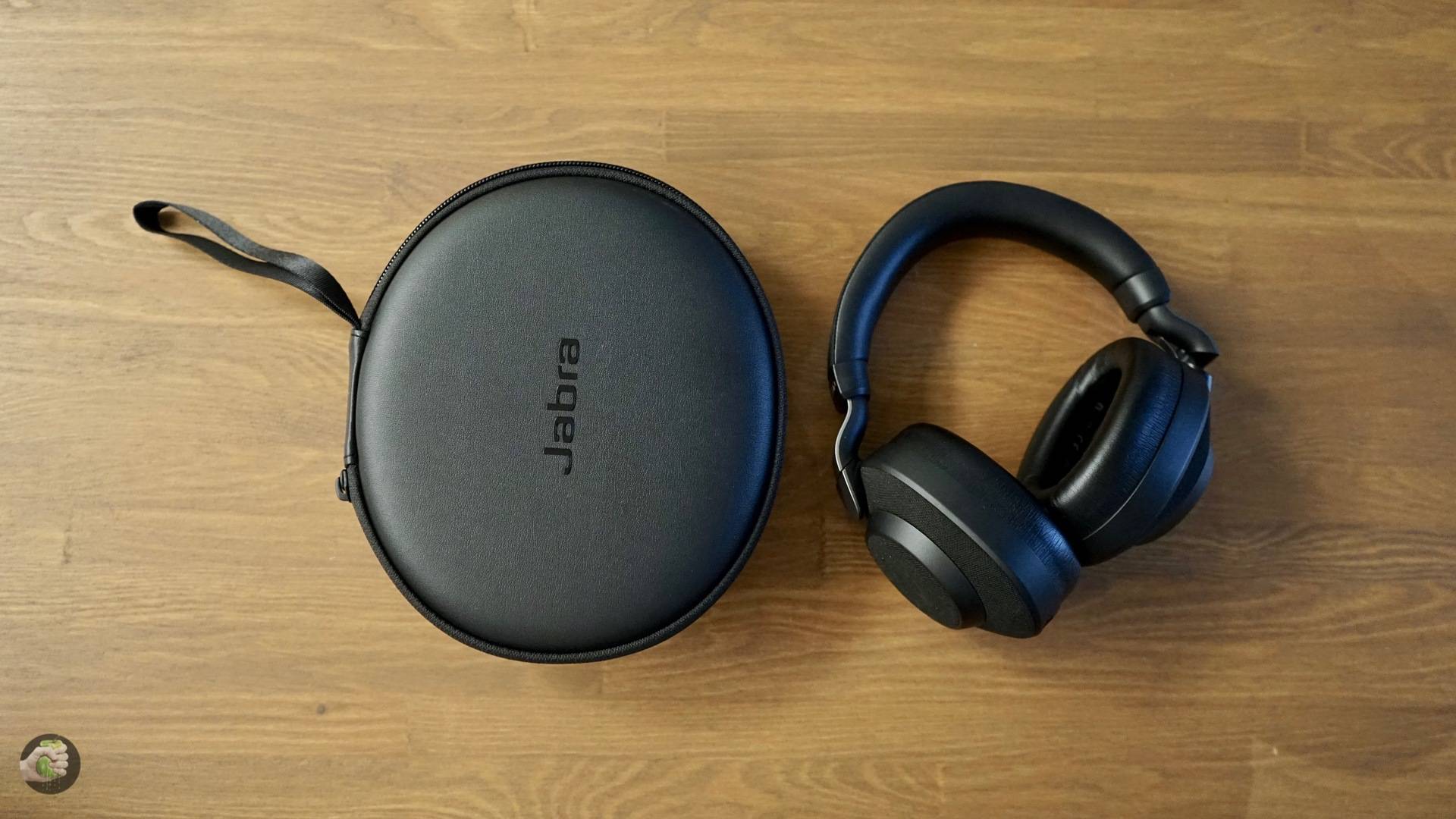 В комплекте Jabra Elite 85h есть удобный жёсткий кейс, напоминающий таковой у конкурента от Sony. В нём есть немного места и для USB-C кабеля, и для аудио кабеля на всякий случай – всё с собой.