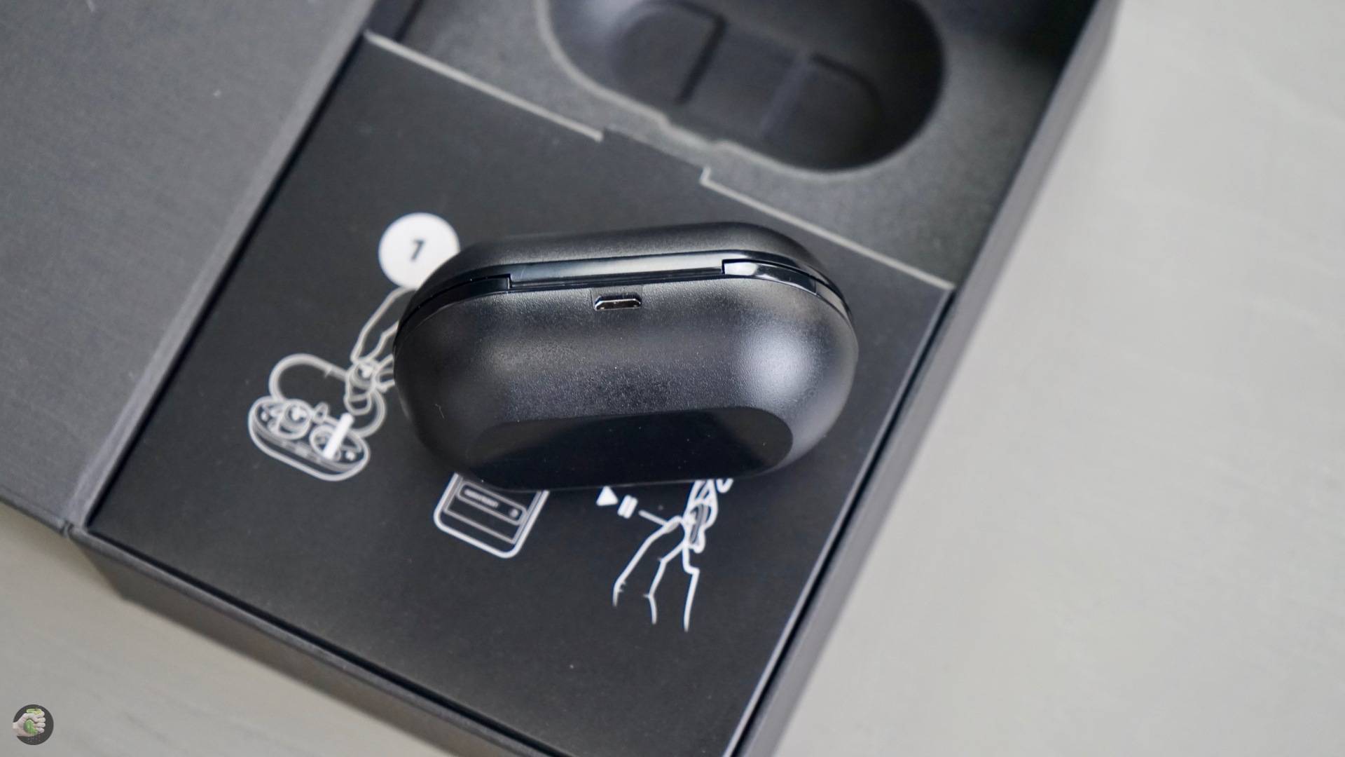 В большой коробочке скрывается относительно небольшой зарядный кейс. Увы, даёт он всего 8 часов работы — с тяжеловесами вроде Beats Powerbeats Pro не сравнить (там сутки в автономе). Но и кейс тоже меньше почти в два раза. Заявленное время работы около четырёх часов в режиме воспроизведения музыки, рассчитывайте примерно на 3 часа 40 минут работы на громкости чуть выше средней. Больше у меня не получилось выжать.