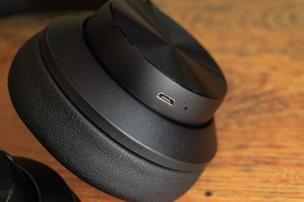 На левой чашке снизу есть порт microUSB для зарядки наушников и маленькое отверстие со светодиодом, который светиться во время восполнения аккумулятора.