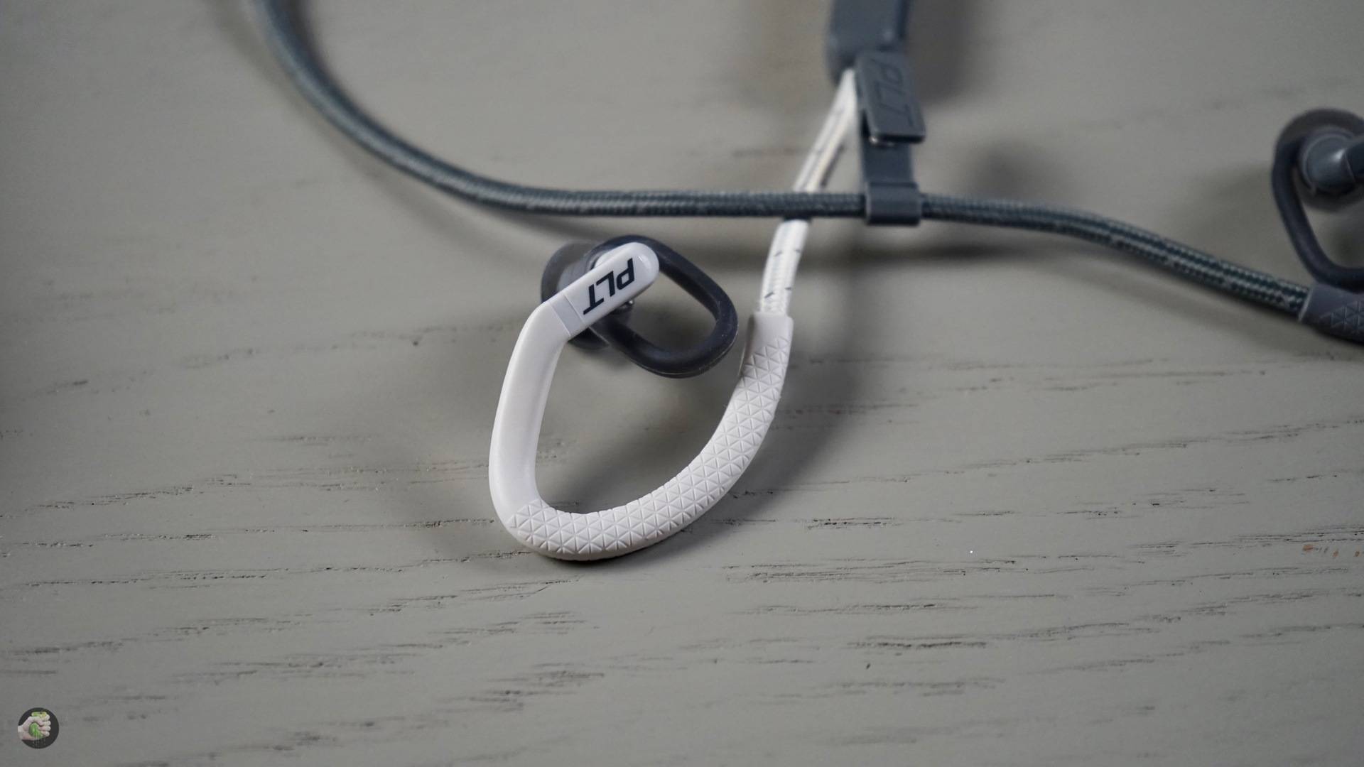 Кроме заглушечки, придраться не к чему. Очень приятные материалы дужек, в меру твёрдая резина: и не слишком мягкая, и не слишком плотная. Насадки своей формы, есть уплотнительные кольца, в ушах всё это хозяйство особо не ощущается, сидит отлично. Есть карабин для крепления к майке, можно его переместить назад и крепить майку там.
