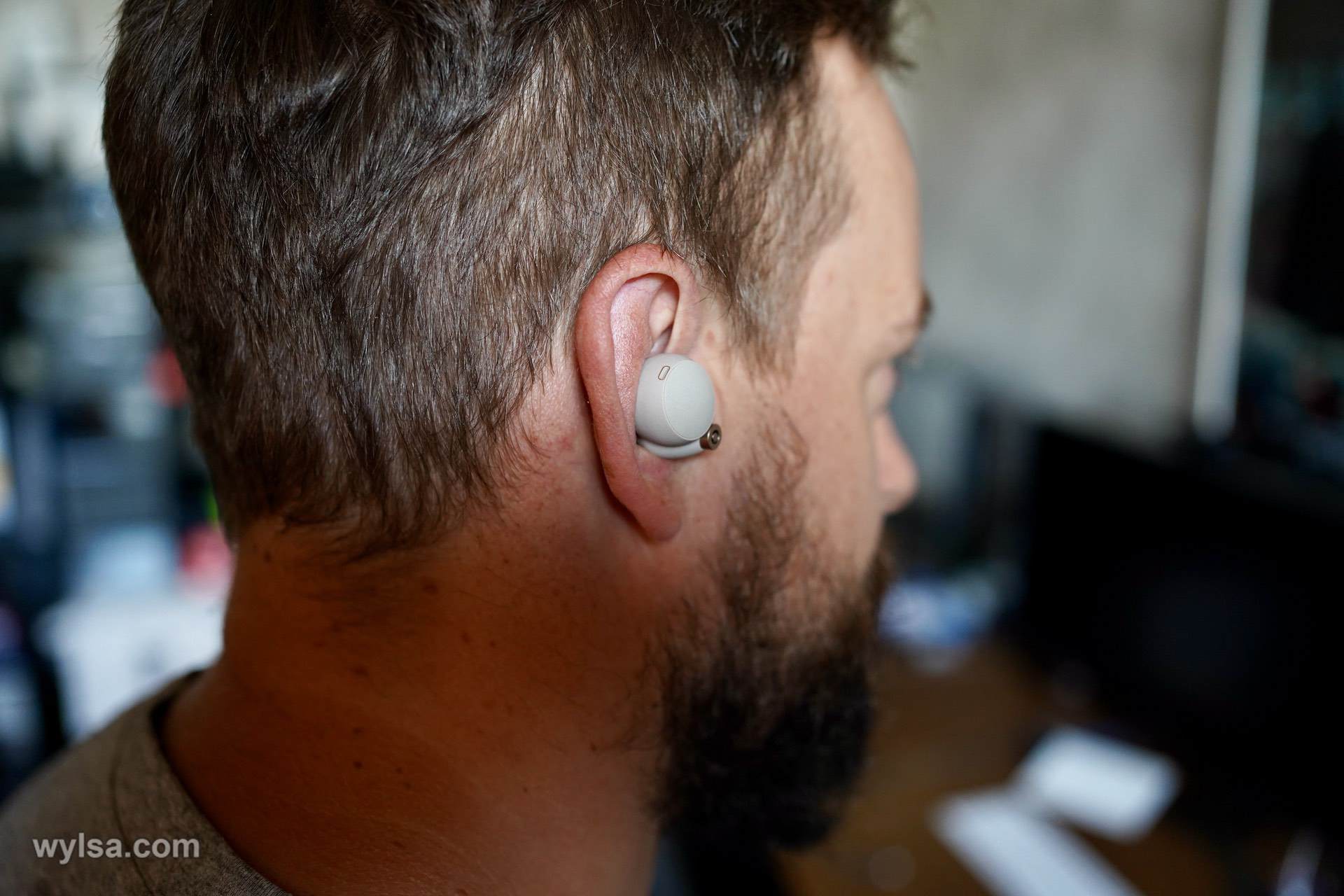 И, если честно, я не понимаю, как в Sony показывают рекламные картинки и видосики, где с наушниками бегают девушки. Здесь очень здоровая чашка и размещение в ухе в два приёма: вам нужно заправить поглубже насадку и потом как-то вмять в ушную раковину основание. Люди в нашем офисе сдавались на втором этапе — чашка просто не вмещалась или вмещалась с усилием и дальше была только боль. Повторюсь, мне повезло, я могу ходить с Sony WF-1000XM4 хоть час, хоть два, но покупать вслепую эти наушники — безумие.