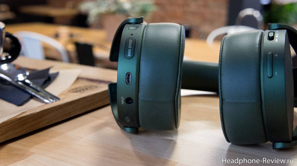 На правой чашке уха есть кнопка питания, кнопка эффекта низких частот, порт micro USB, аудиоразъем 3,5 мм и кнопка шумоподавления.
