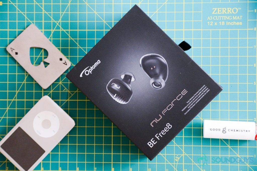 NuForce BE Free6 от Optoma имеет тот же общий дизайн, что и предыдущие продукты, включая футляр для переноски, который можно использовать в качестве аккумулятора для быстрой зарядки наушников в дороге. Батарейный отсек имеет форму таблетки, достаточно мал, чтобы поместиться в ладони, и имеет текстуру, напоминающую песчаник.
