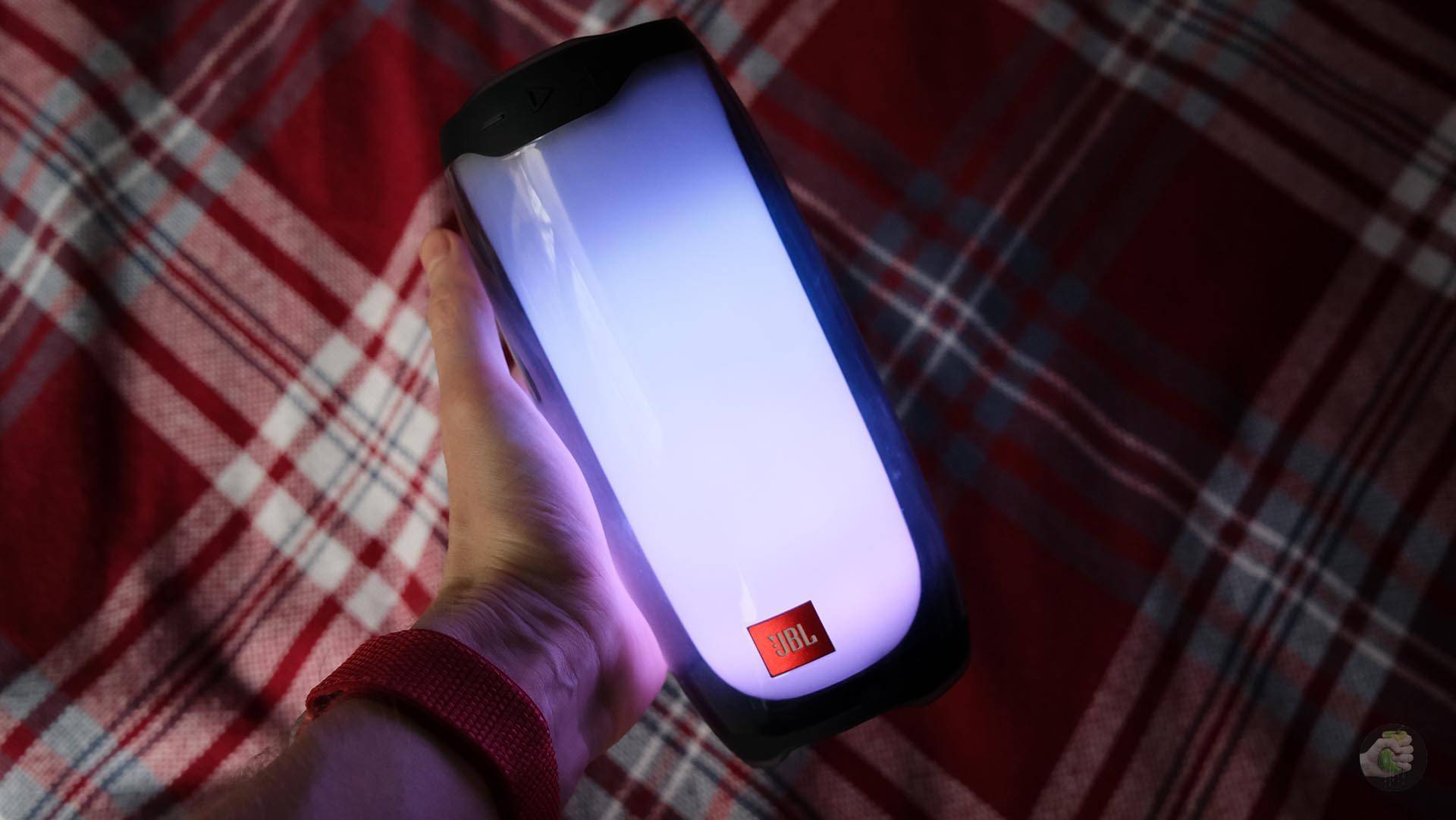 С лучшей стороны показана яркость колонки. Если вы планируете сделать кому-то подарок в виде JBL Pulse 3, подарочная упаковка не понадобится.