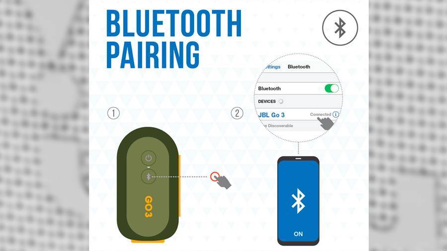 По крайней мере, налаживание связи по Bluetooth дополнительных вопросов обычно не вызывает. Для первого сопряжения с источником звука (смартфоном, планшетом и т.п.) после включения питания на JBL Go 3 следует также кликнуть по кнопке сопряжения. В последующих сеансах все ограничится только нажатием кнопки питания. Интересно, что включение/выключение и успешное связывание портативного устройства сопровождается фирменными звуками, а также молочно-белой индикацией светодиода: медленное мерцание – нет соединения, быстрое – идет процесс связи, постоянное свечение – есть сопряжение.