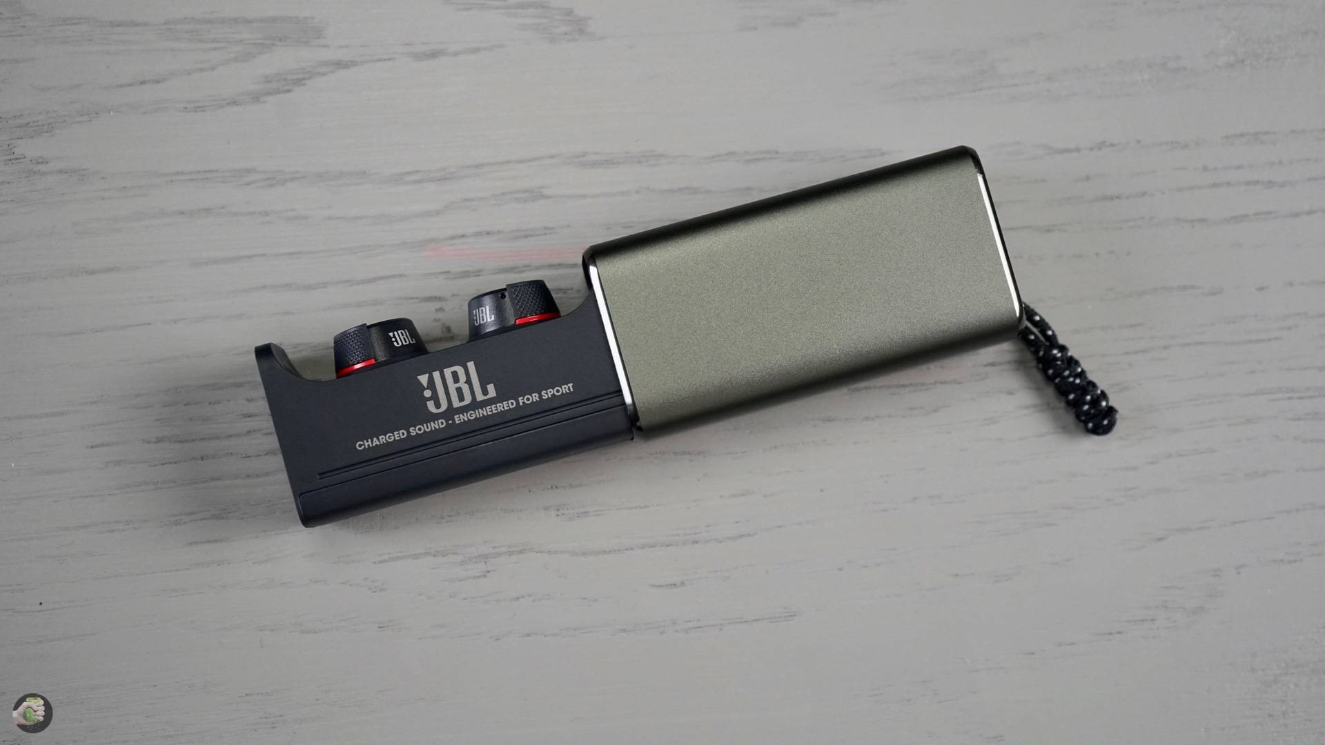 В кои-то веки прикольный комплект поставки. Но только пусть вас не обманывает маленький с виду кейс для зарядки. Это сверху он узенький, но, потянув за прикреплённую к футляру верёвку, вытаскиваем увесистый «кирпичик» из алюминия.