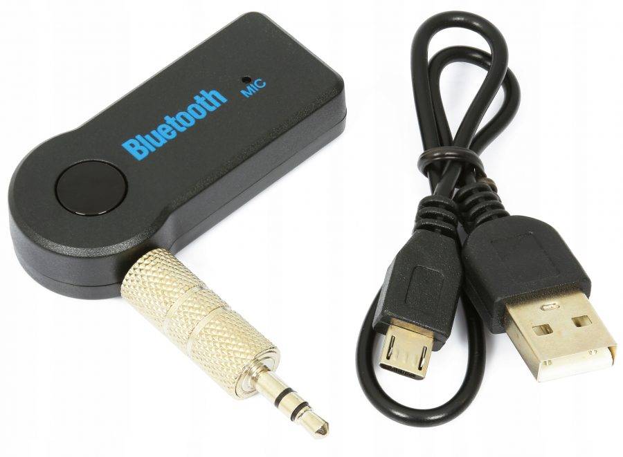 - Переходник из Bluetooth на AUX. Работает только при наличии в автомагнитоле USB входа или в случае использования специального переходника. Через блютуз устройство считывает информацию, передавая ее на автомагнитолу.