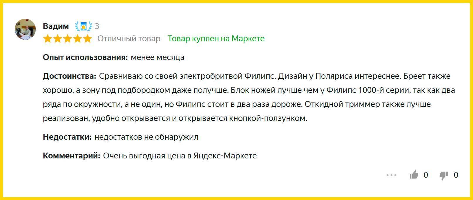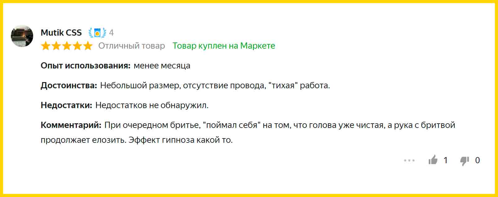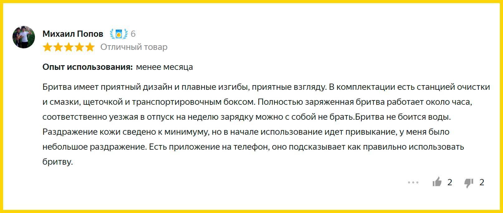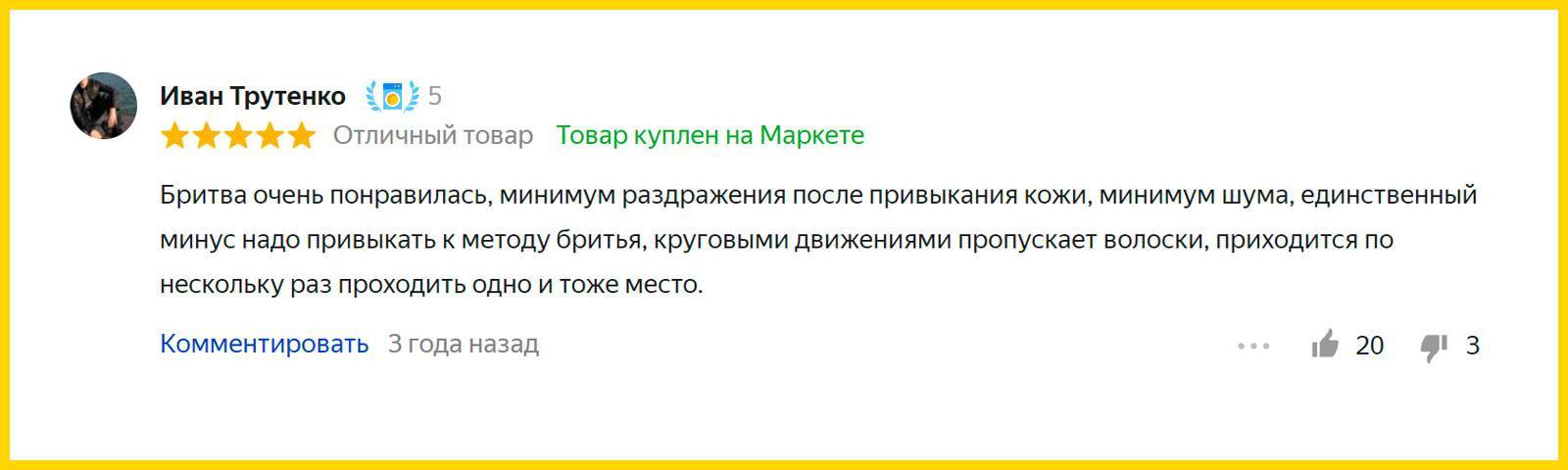 Покупателям нравится качество бритья, тихая работа, наличие триммера в комплекте. Питание бритвы исключительно автономное, работа от сети не предусмотрена, что в некоторых случаях не совсем удобно.