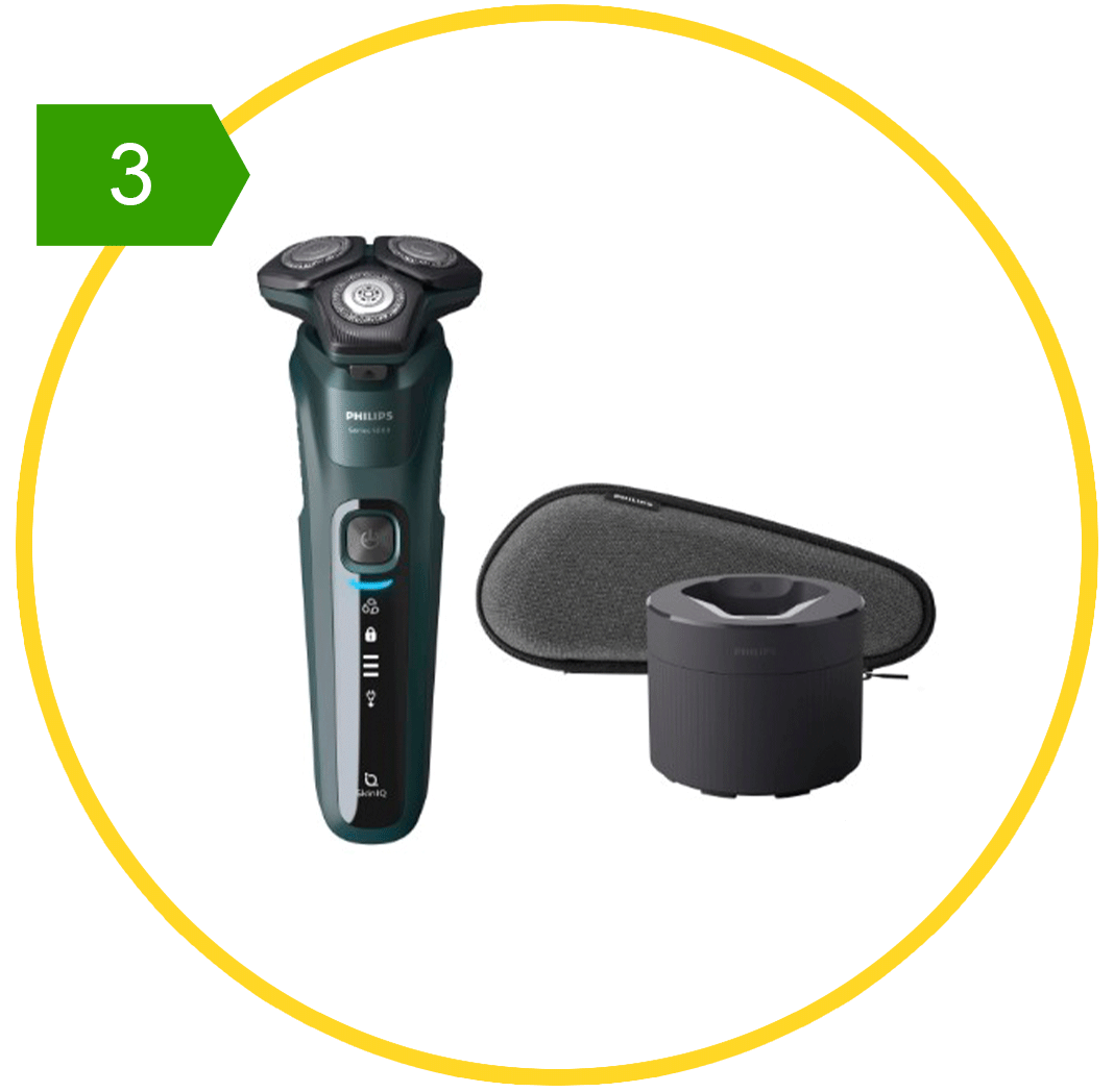 К бюджетным моделям с такой комплектацией относится S3333 Shaver 3300, а модель премиум класса Philips S9711 Series 9000 имеет также и удобную систему самоочистки.