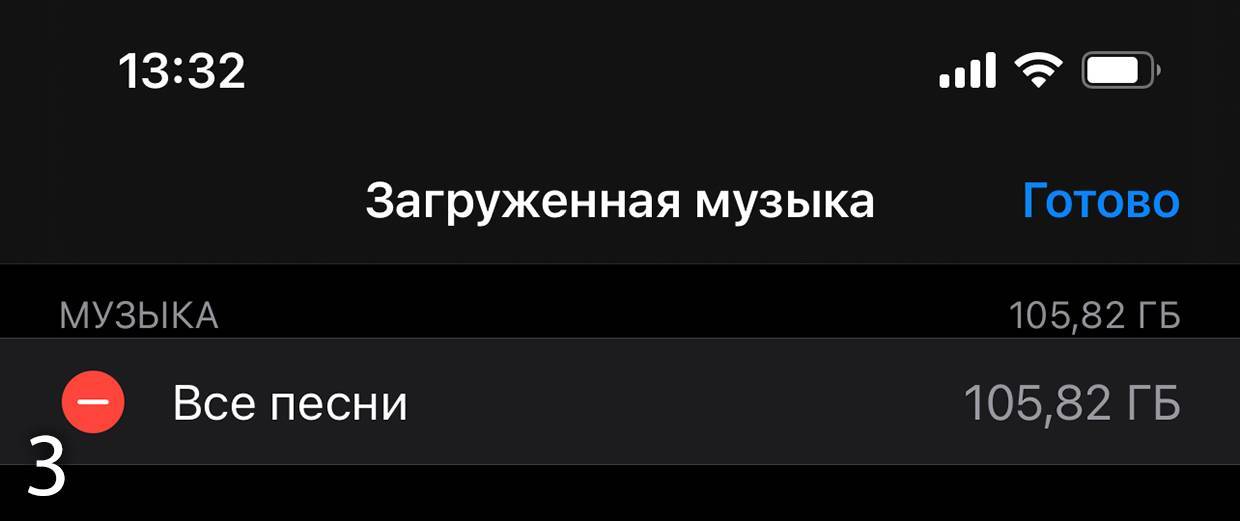 3. Заходите на iPhone или iPad в Настройки -> Музыка -> Загруженная музыка. Жмём на Изменить в правом верхнем углу, затем на «минус» напротив первого пункта Все песни.