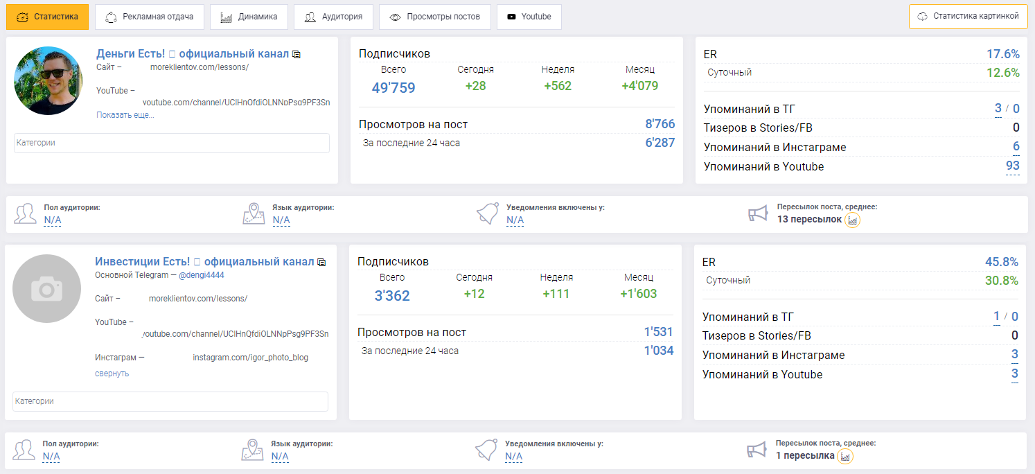 Динамика положительная, аудитория проекта постепенно растет. По числу уникальных просмотров видно, что часть людей действительно интересуется контентом. Активность на каждом из каналов средняя.