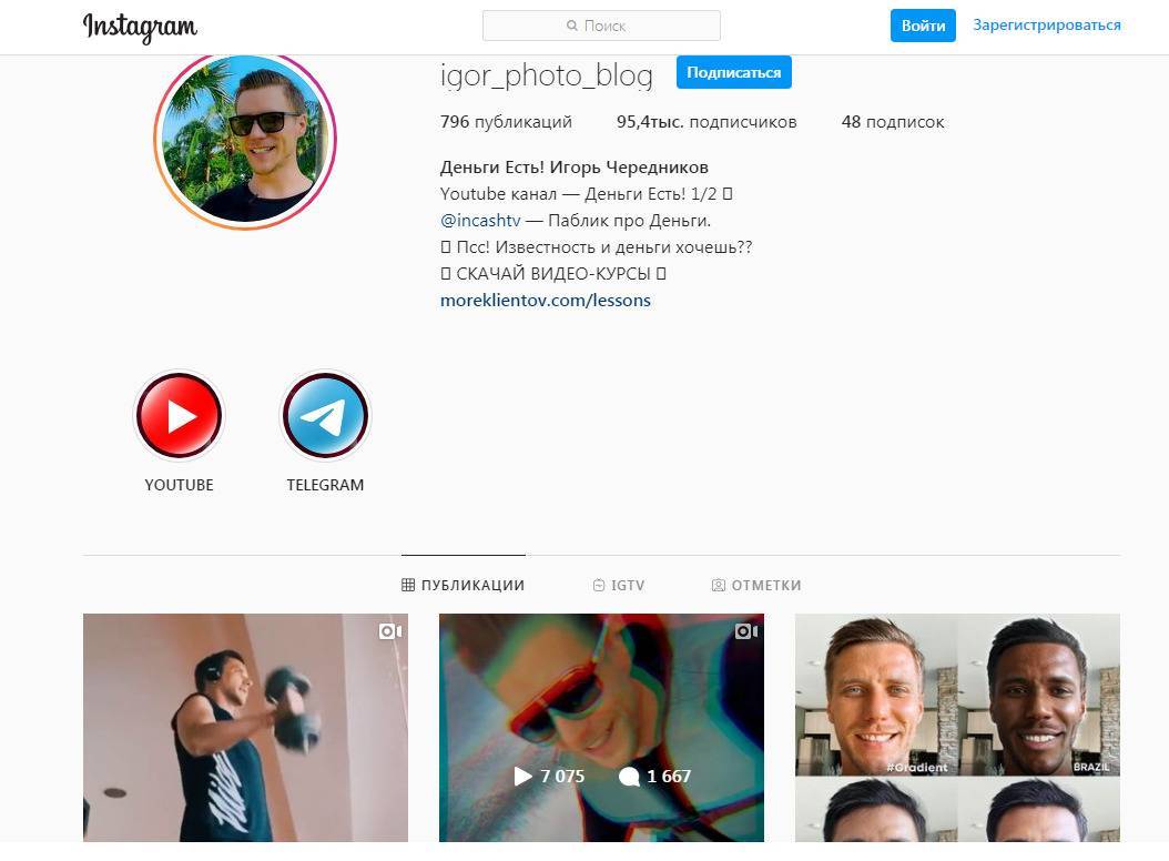В Instagram так и вовсе почти 100 000 подписчиков. Пользователи комментируют публикации Игоря Чередникова, хотя отзывов на курсы «Деньги Есть!» здесь не найти.