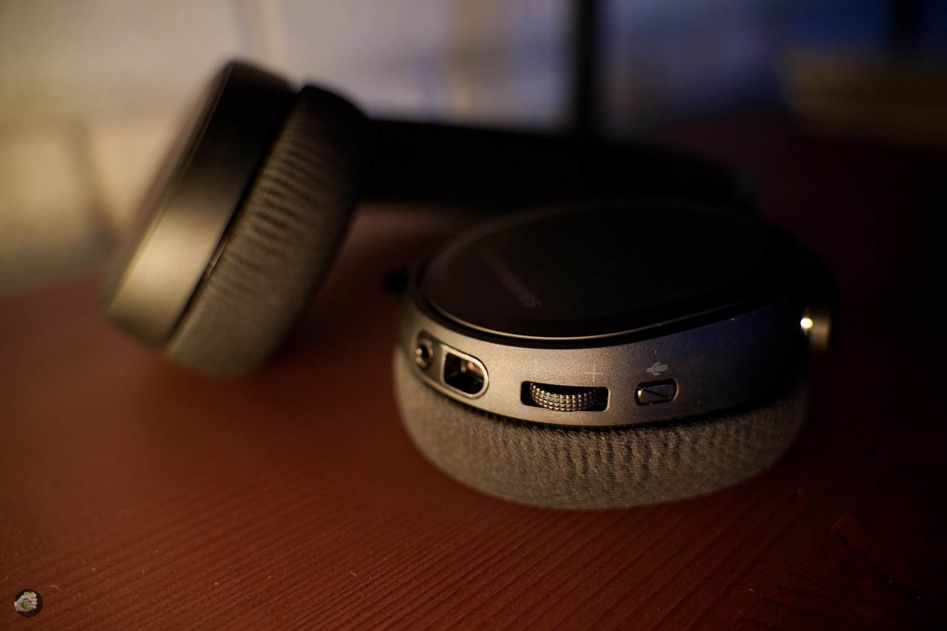 На задней стенке левой чашки гарнитуры находится кнопка микрофона и регулировка громкости. Колёсико расположено чуть ниже середины, так что я частенько задевал его, когда снимал и надевал наушники.