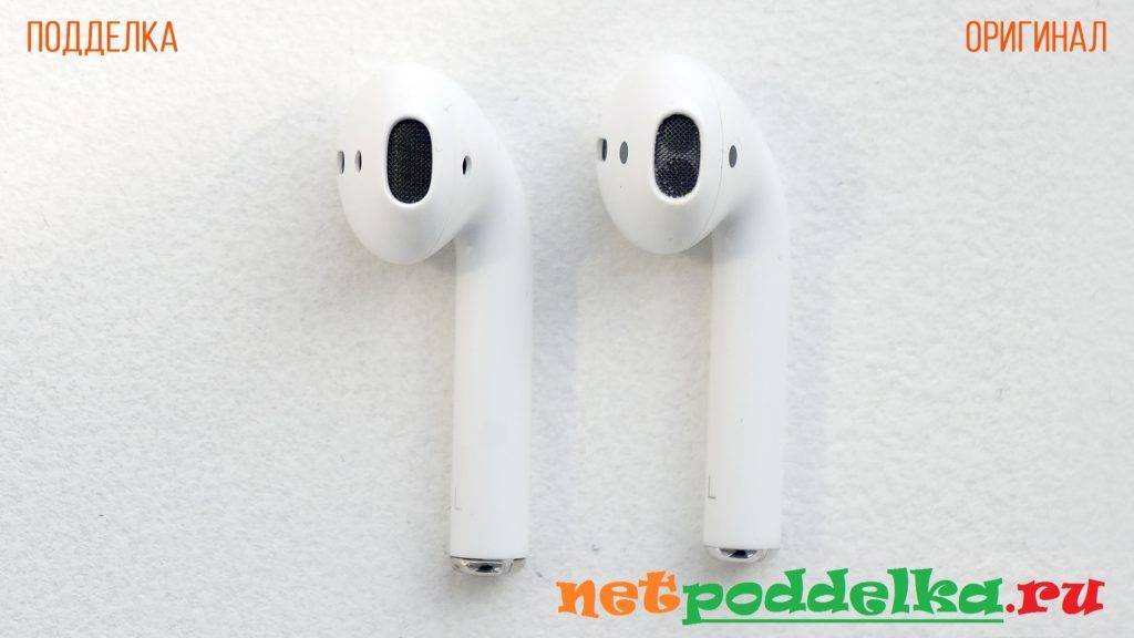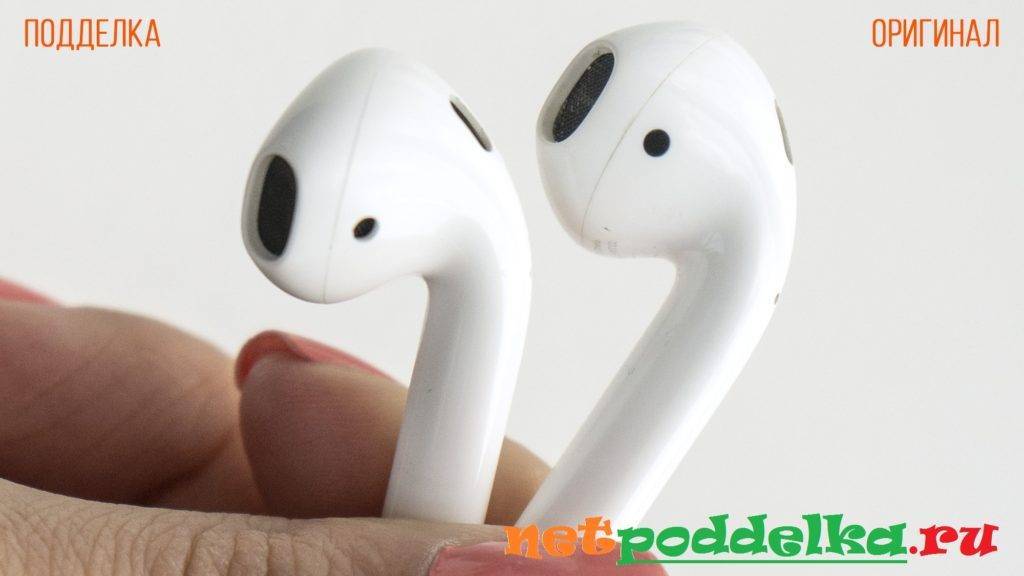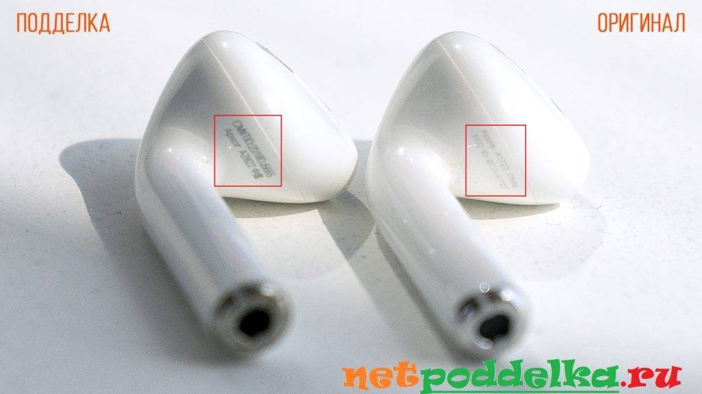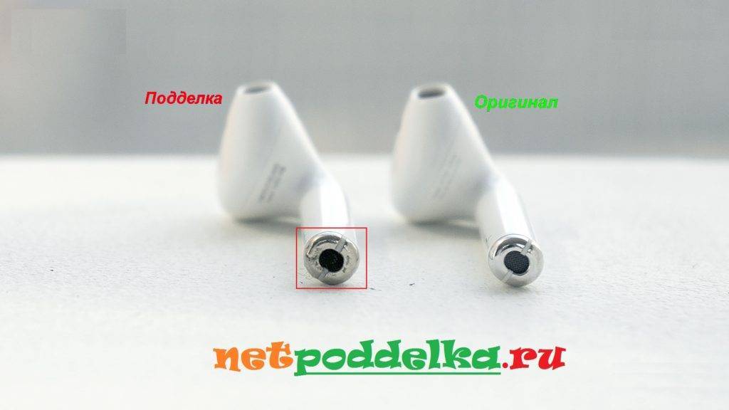 Форма у оригинальных и поддельных наушников неотличима, но разница в размерах есть (у настоящих — 40,5 х 18,0 х 16,5 мм).